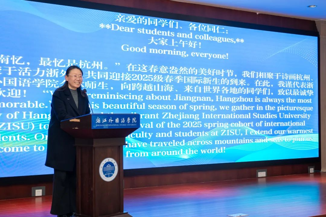 The ceremony commenced with a speech by Chai Gaiying, who warmly welcomed the international students to the Zhejiang International Studies University (ZISU) family as new "ZISUers."