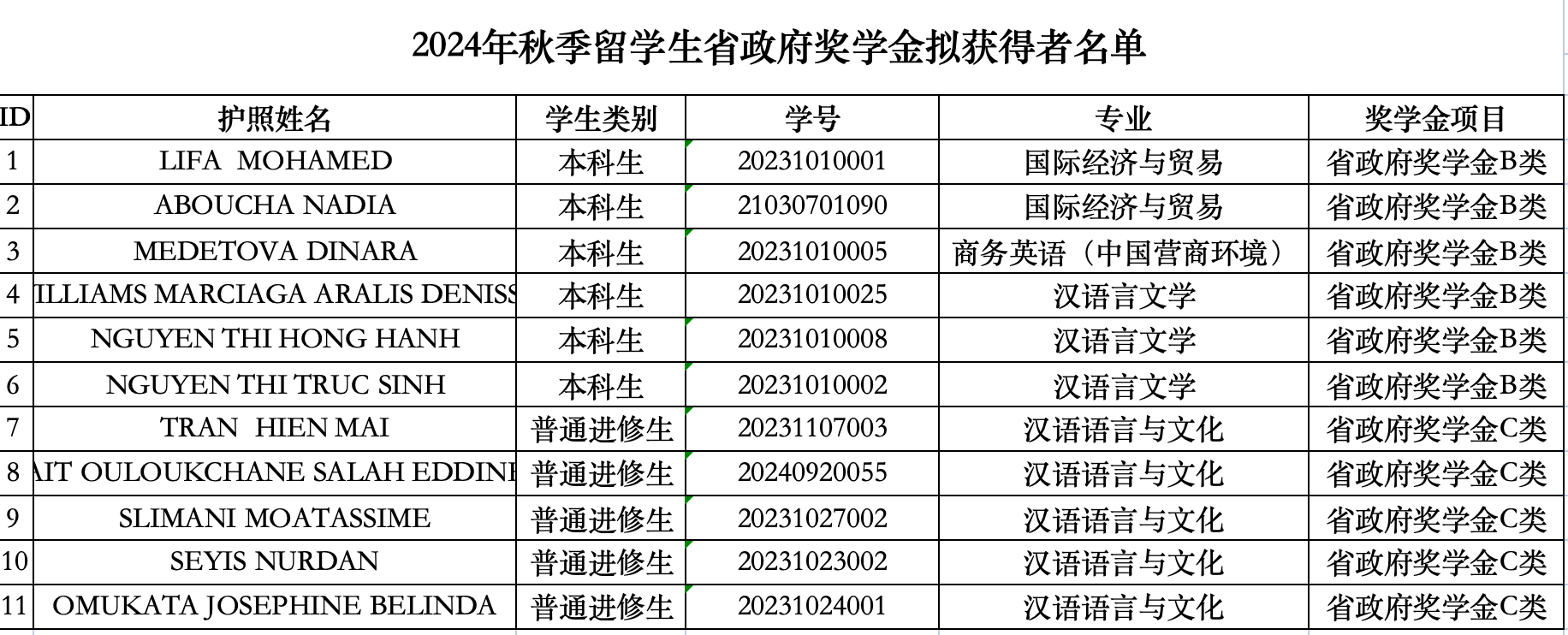 According to The Regulation of Scholarship Management of ZISU, after the students' individual application, the college audit, preliminary evaluation, it is proposed to recommend ABOUCHA NADIA and other 11 students as the proposed recipients of The Provincial Government Scholarship for the academic year of 2024, and the list of the preliminary examination is hereby publicized.